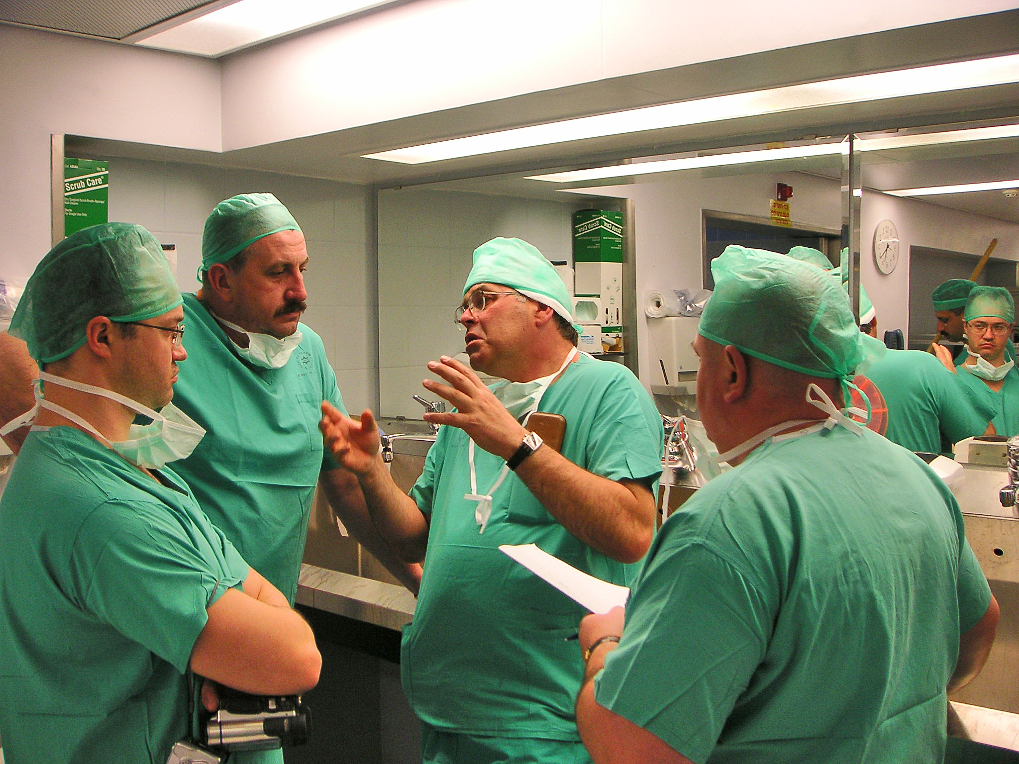 У нас обычно три. Иногда четыре. Если что-то простое — можно вдвоём. Но это всегда очень высокая психологическая нагрузка, потому что ты, по большому счёту, не должен ошибиться. Если ошибся — это может природа простить, а может и не простить. Там три составляющих успеха: хирург, имплант и пациент. Хирург, если опытный, всё будет хорошо; если он не ошибся по каким-то объективным причинам. Имплант — это должна быть качественная конструкция. У нас, в общем-то, это работает, это есть. Если ничего не изменится в стране, так будет и дальше. А пациент — наверное, самый ключевой фактор в правильно организованном месте. Если правильно организована работа, то хирург хороший и имплант хороший. Имплант купили качественный, хирург работает знающий, а вот пациент — это, к сожалению, ситуация, сильно варьирующая: как у него кости дальше; сегодня они слабые, средние, крепкие, какими они станут дальше. Потому, то мы тот же эндопротез ставим на много лет — на 15-20. Что там будет через 10 лет? Что будет через 5? Как биология будет работать? А идея эндопротеза в том, что железяка должна быть фиксирована в кости. Кость стала слабая — и всё. Фактор хирурга — это как эта железяка поставлена. Пространственные вещи, степень фиксации, травматичность и т.д. Но если это опытный хирург, который, как считается, делает больше 150 операций в год. Значит, хороший уровень. Значит это профессионал, у которого есть устойчивое качество работы. Во всём мире есть кривая обучаемости. То есть, поначалу результаты плохие, когда человек начинает. Дальше лучше, лучше и, наконец, хорошие результаты. Это везде есть, и на станке токарном.